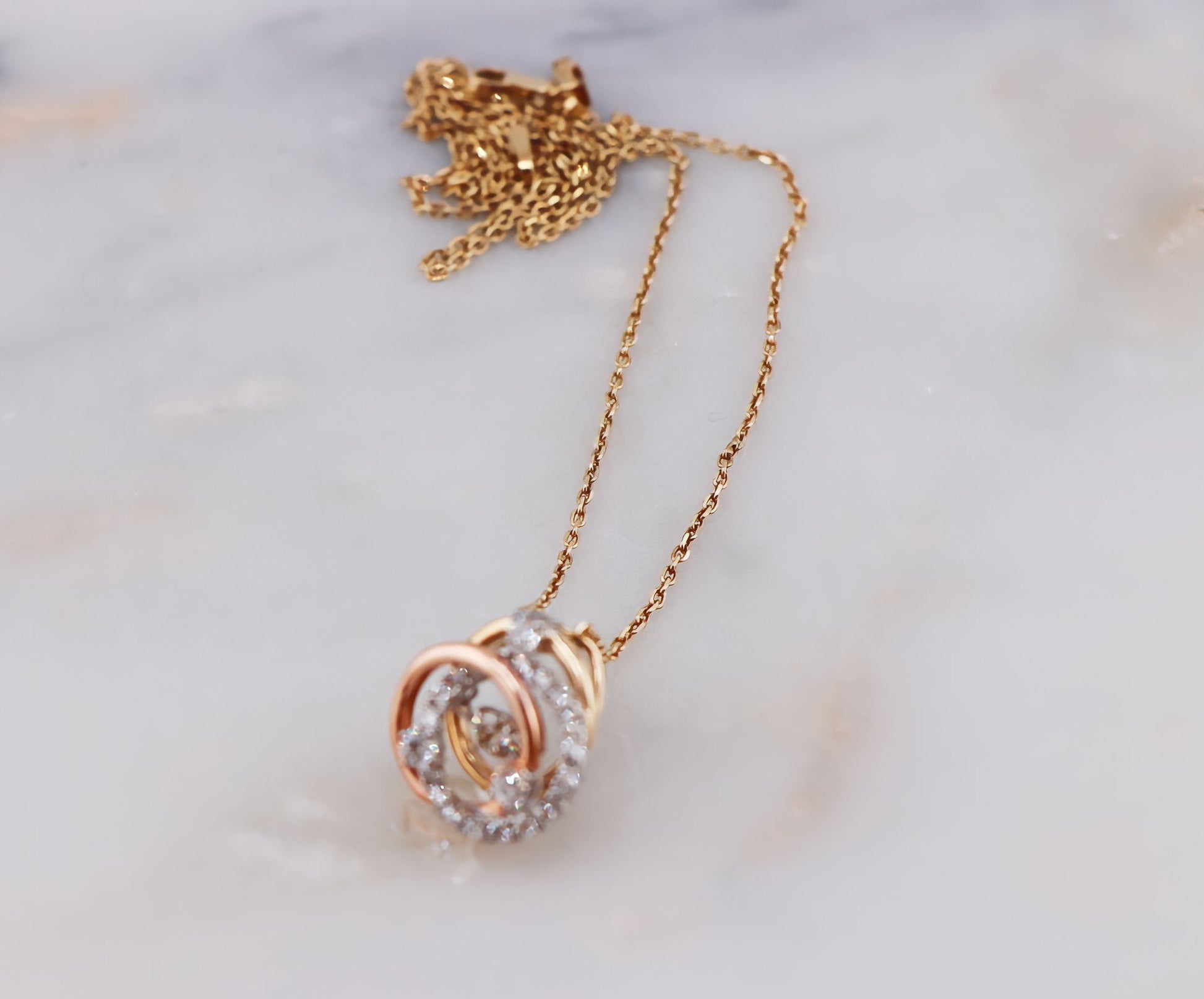 Divine Trinity 14K Yellow Gold Necklace with Interlocking Rings and Diamonds