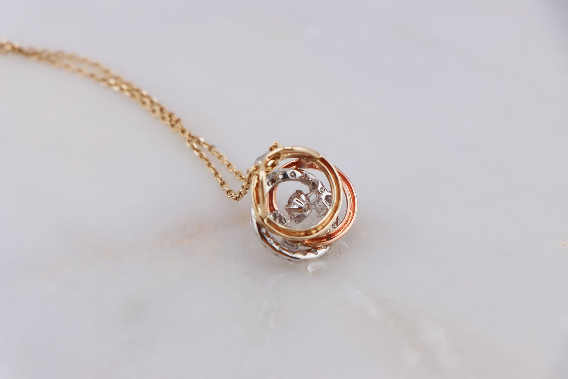 The yellow gold ring represents eternity and unending love, while the white gold ring symbolizes purity and spirituality. The rose gold ring embodies grace and compassion. Together, they form a powerful representation of the Holy Trinity, making this necklace a meaningful and cherished accessory.